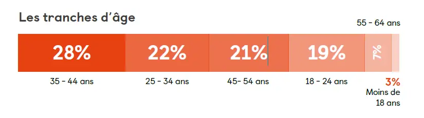 Avec une répartition assez homogène par classe d’âge (97% de nos visiteurs sont actifs et seretrouvent dans la « population active » des 18-64 ans).